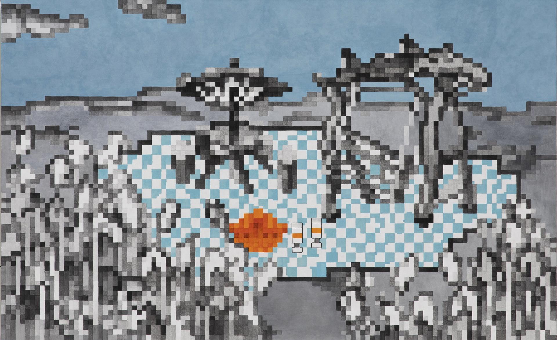 작은 픽셀들이 모여 하나의 조립된 공간을 나타낸다.