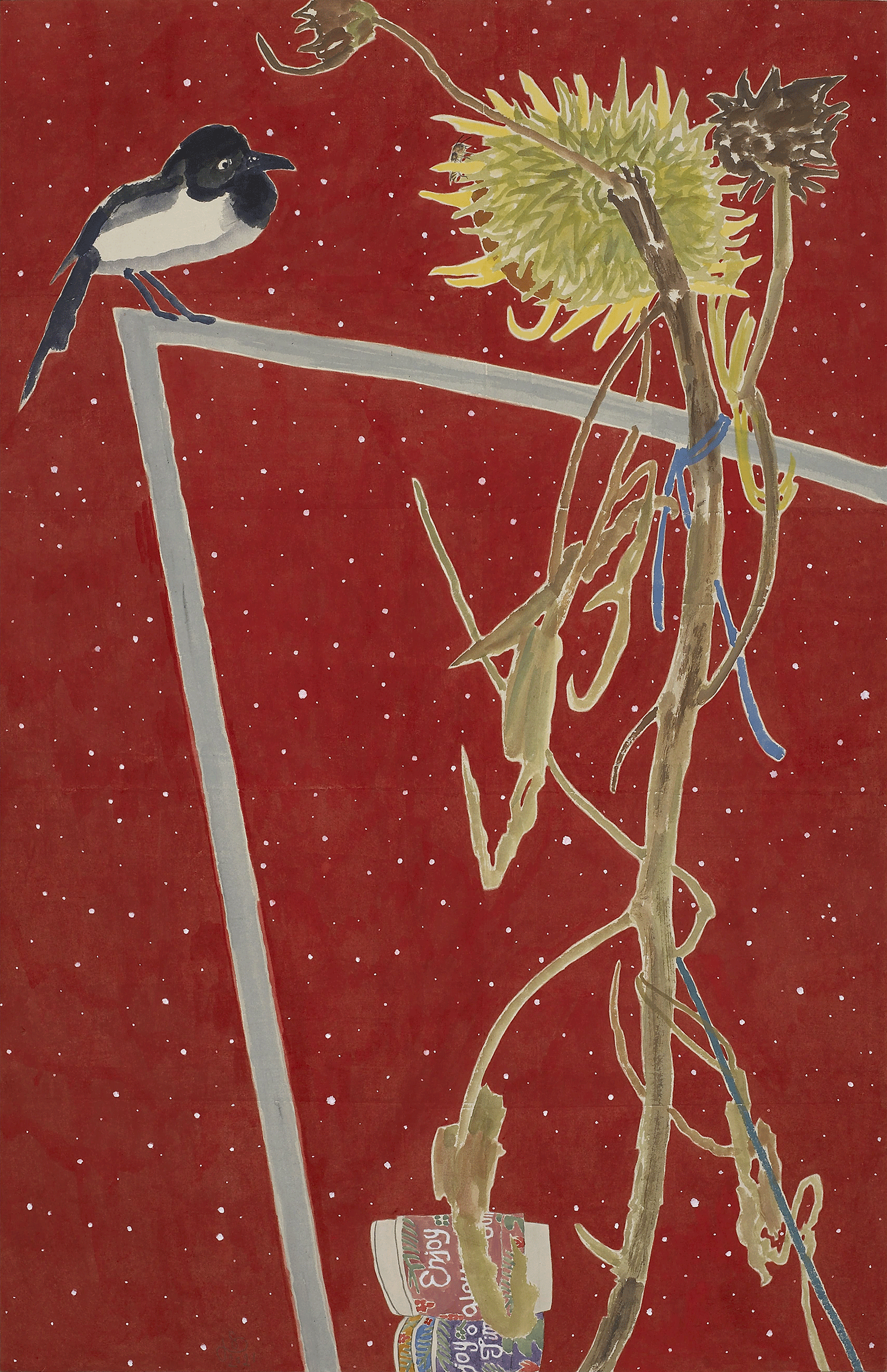장지에 먹,분채